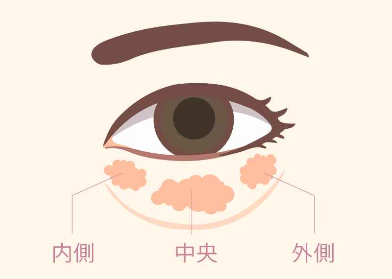 - 目の下の膨らみが影になり、クマのように見えてしまう
