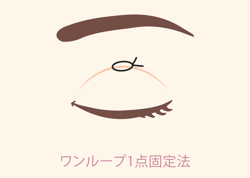 ワンループ1点固定法は、医療用の極細糸をまぶたの内側から通し、1ヶ所をループ状に固定する施術方法です。点で支えながらも線で留めるような安定感を出せるため、自然な二重ラインを作りやすいのが特長です。